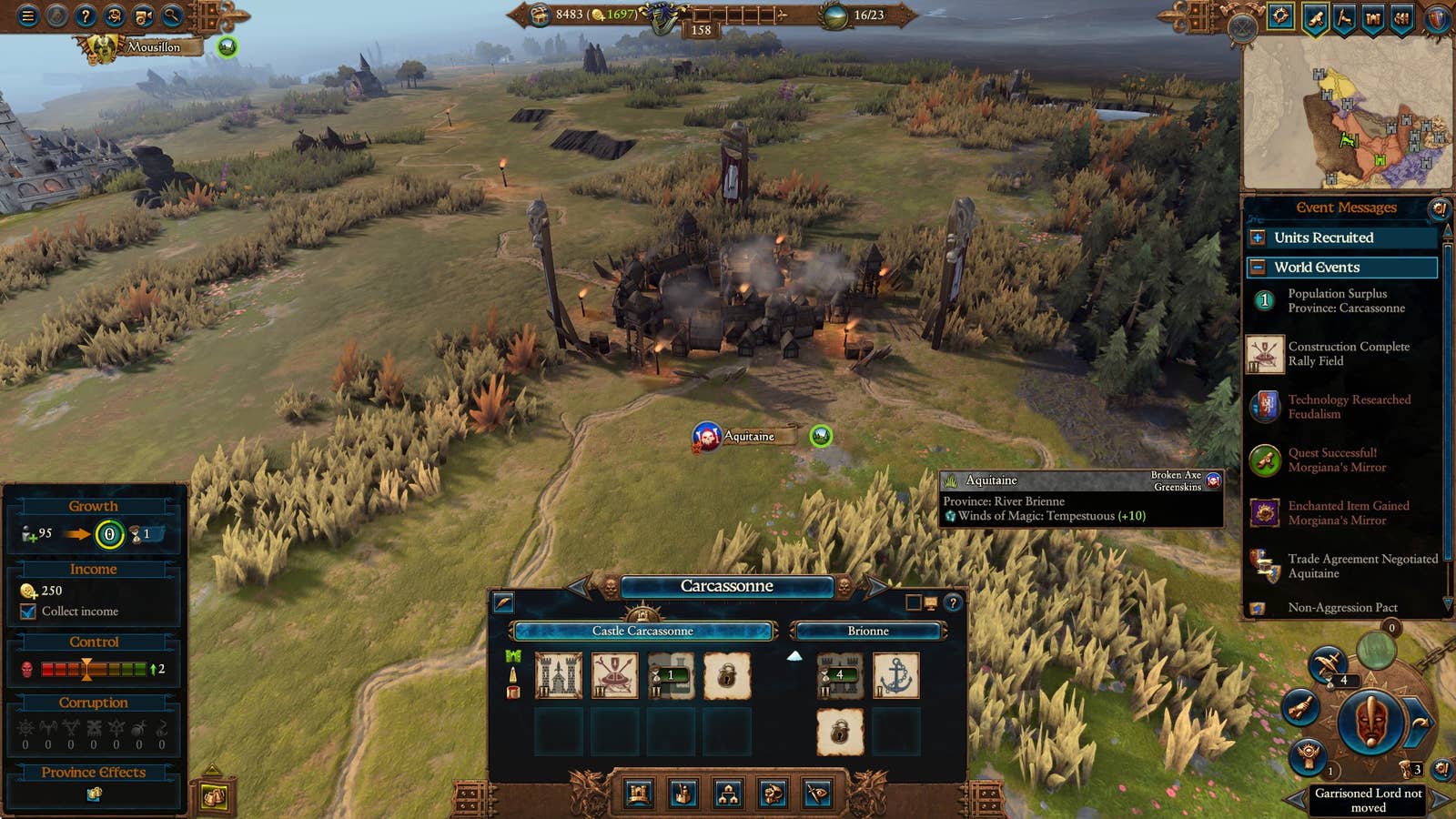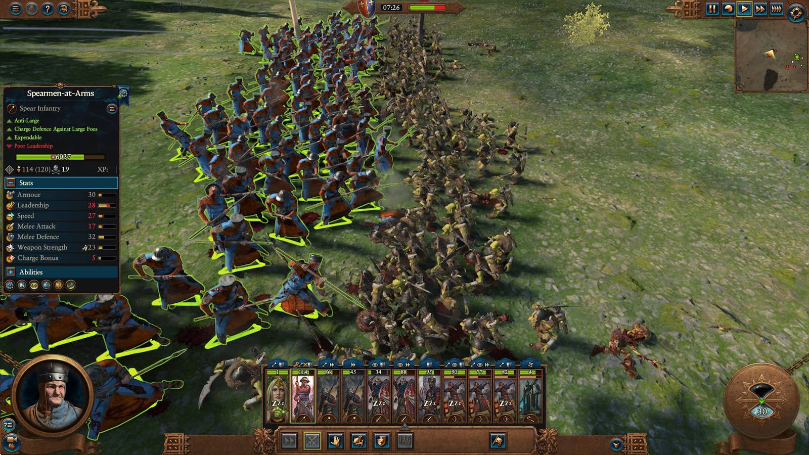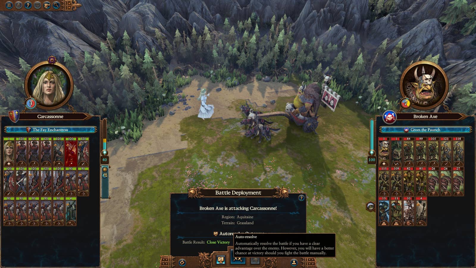 После того как мы справились с Громусом, возвращаем Аквитанию её законным владельцам за значительную сумму. Не волнуйтесь, позже мы вернём их лошадей. Мы собираем все грубые отряды, какие только можем найти, под командованием Лиоры Хоуфсбане, и направляемся к Масифу Оркал, делая обходные манёвры, чтобы захватить больше гоблинов врасплох. Подходя к грязным временным воротам поселений зелёных скинов, мы утешаемся мыслью, что нам не понадобятся бесполезные рыцари в этой осаде. Вместо этого готовимся прорваться через то, что они называют ‘пещерными лошадьми’. Мы даже притворимся, что скваги тоже лошади, просто ради забавы.’
