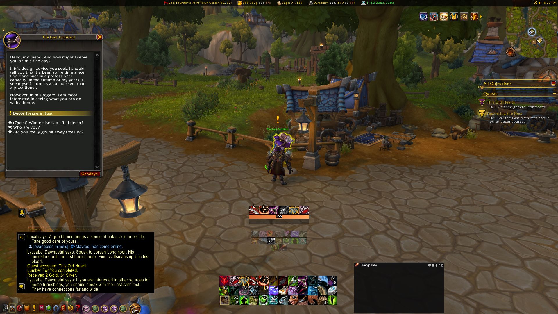 Чтобы начать задание, вам нужно найти того, кто его выдаёт. Игроки Альянса должны найти The Last Architect в координатах 52.6, 37.6. Игроки Орды должны искать The Last Architect в координатах 54.0, 58.0. Вы можете найти эти места на вашей карте.