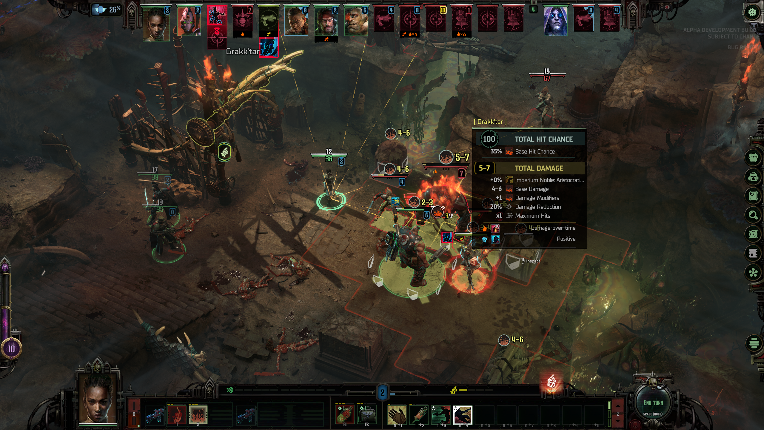 Одним из самых впечатляющих аспектов альфа-версии является то, сколько основных персонажей игры уже доступны для управления. Нам удалось протестировать разнообразную группу, начиная от новобранца Огрина Когга и заканчивая могущественным персонажем Эльдар, чьи цели пересекаются с нашими. Это солидный список игровых персонажей, по крайней мере, на данный момент.
